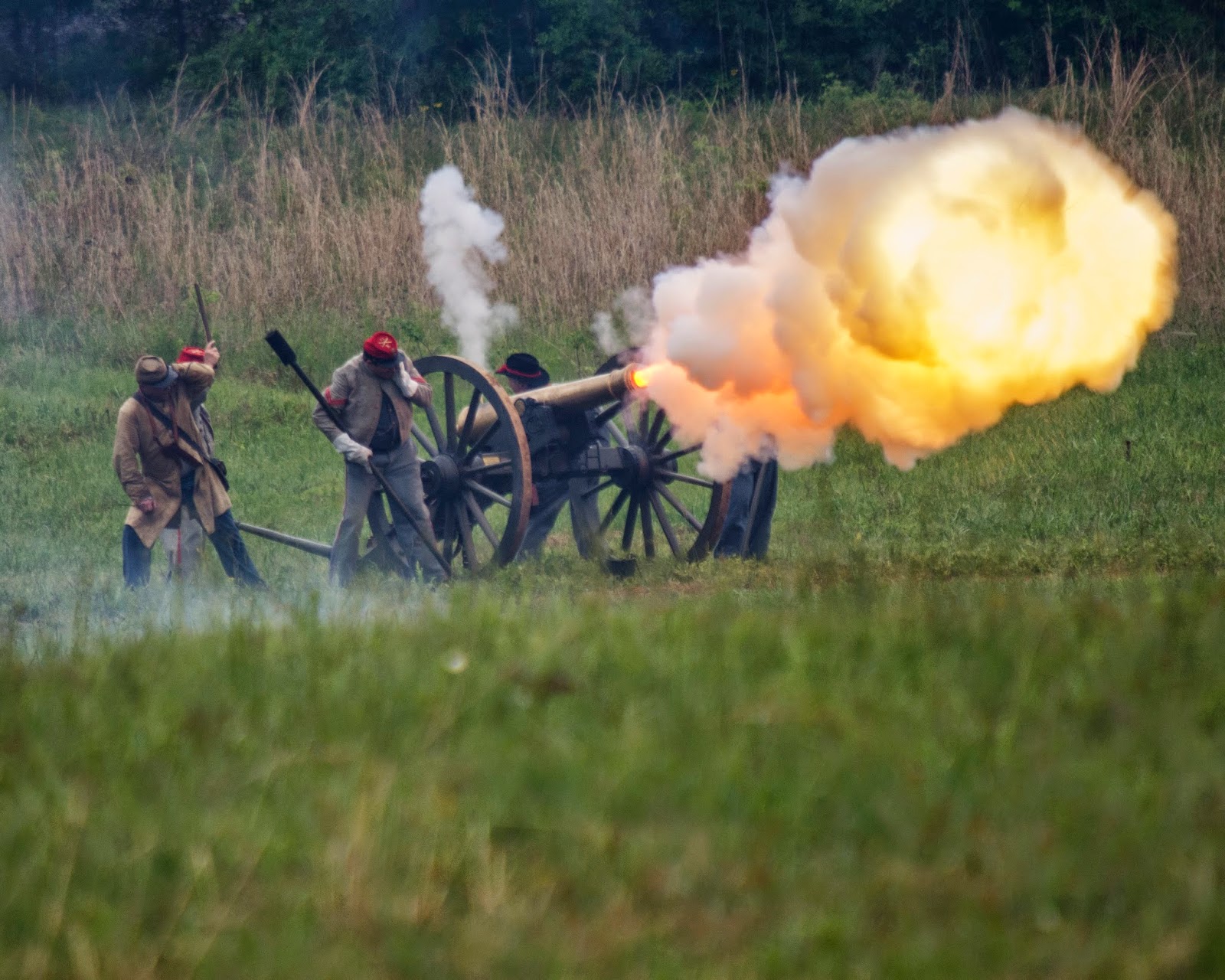 For the documentary that I have been working on, I have had the chance to photograph cannons being fired at different Civil War Reenactments around Georgia. It started out with a few shots that showed the smoke billowing out in clouds from the barrel of the cannon, but I wanted fire, lots of fire. So I did some practice and through trial and error I developed my method.